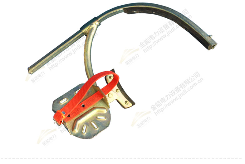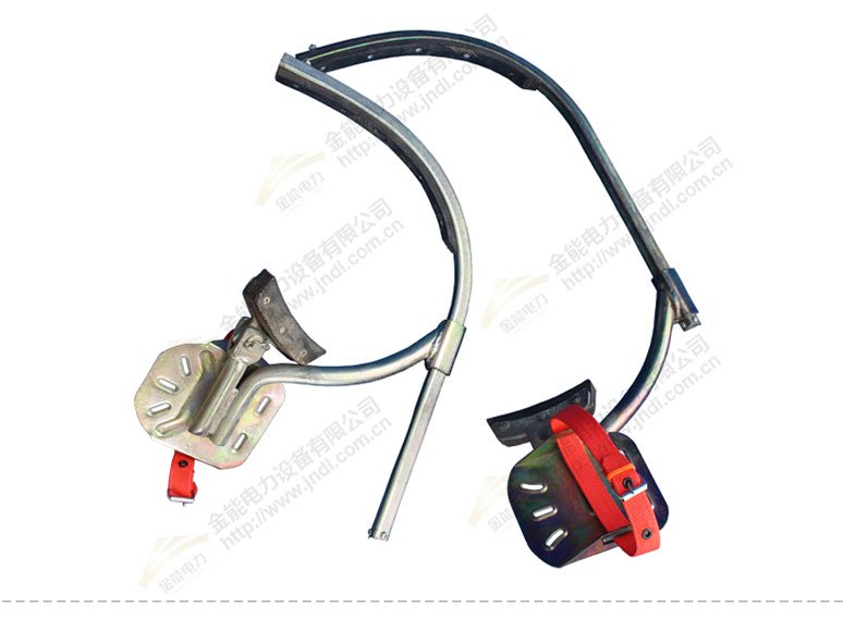 腳扣是攀登水泥電桿的主要工具之一,用腳扣的半圓環(huán)和根部裝有橡膠套或橡膠墊來防滑。
