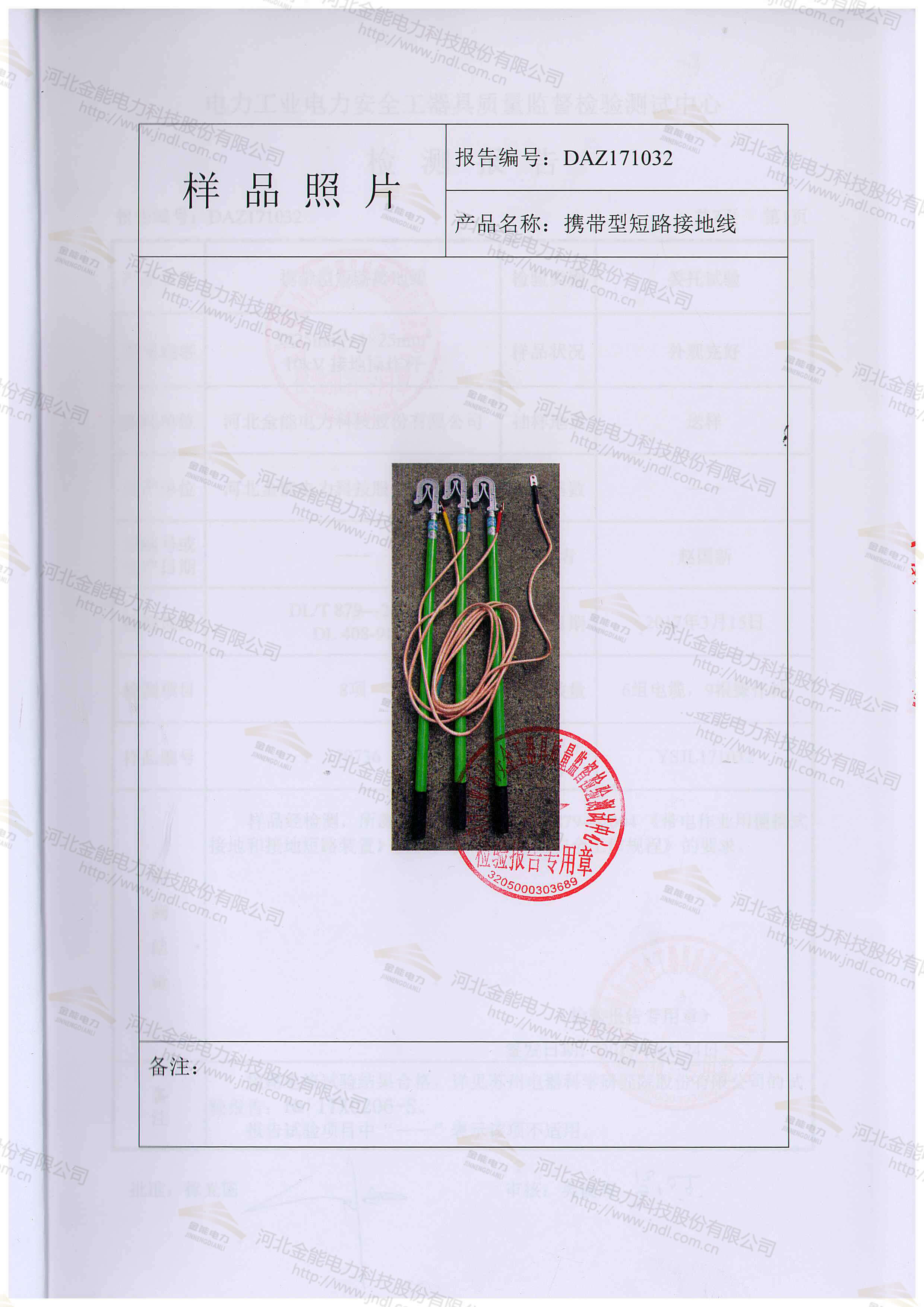 10kv 25平方接地線檢測(cè)報(bào)告